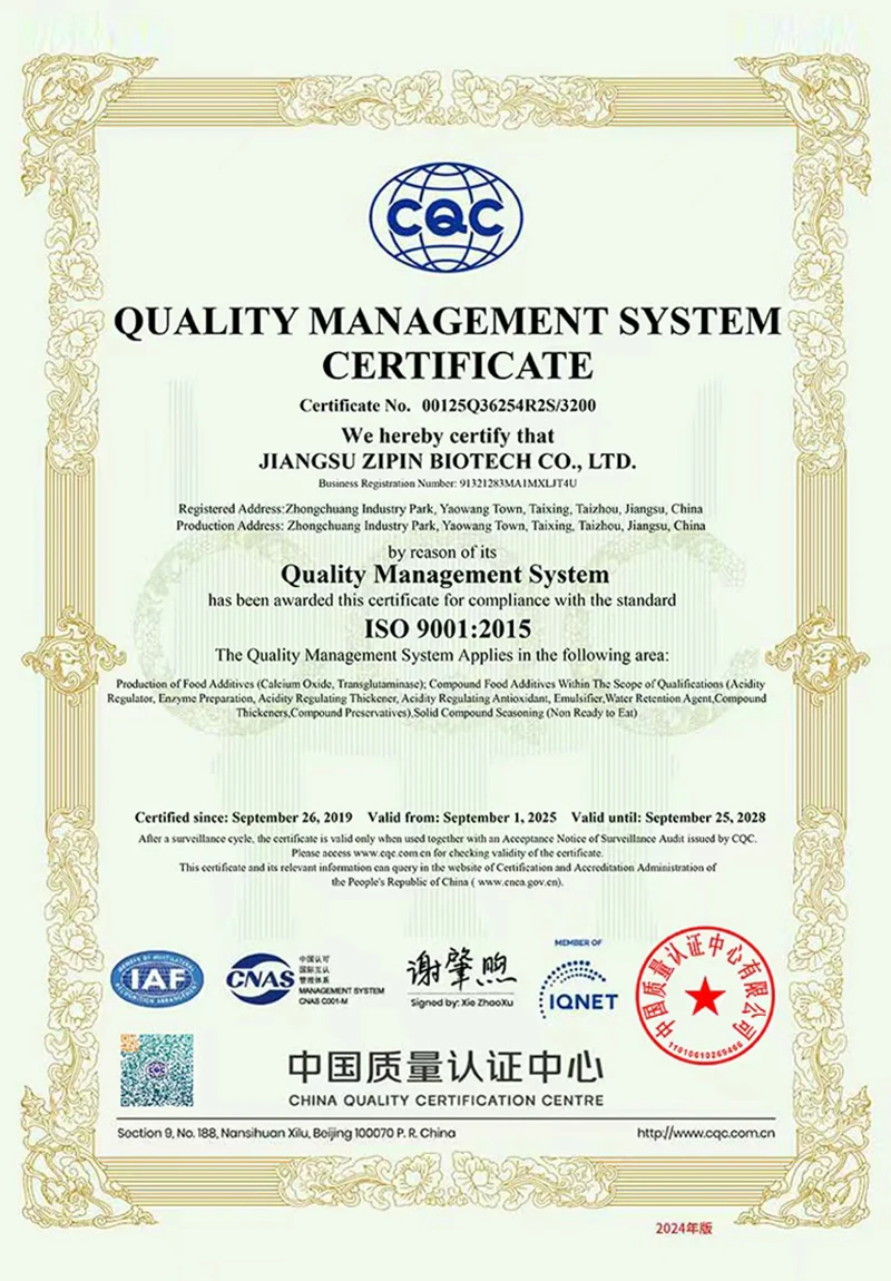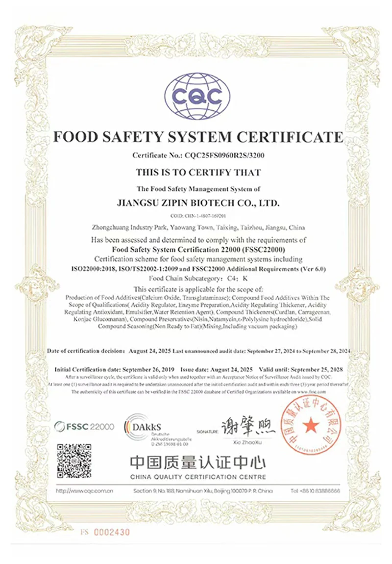 জিয়াংসু জিপিন বায়োটেক কোং, লিমিটেড 20,000㎡ এলাকা জুড়ে 2016 সালে প্রতিষ্ঠিত হয়েছিল। একটি আধুনিক প্রাইভেট এন্টারপ্রাইজ হিসাবে, আমরা এখন প্রধানত গবেষণা ও উন্নয়ন, খাদ্য সংযোজক উত্পাদন এবং বিক্রয়ে নিযুক্ত। আমাদের প্রধান পণ্য হয়ট্রান্সগ্লুটামিনেজ, কার্ডলান, ε-পলিসাইন, নিসিন, নাটামাইসিন এবং অন্যান্য খাদ্য সংযোজন।